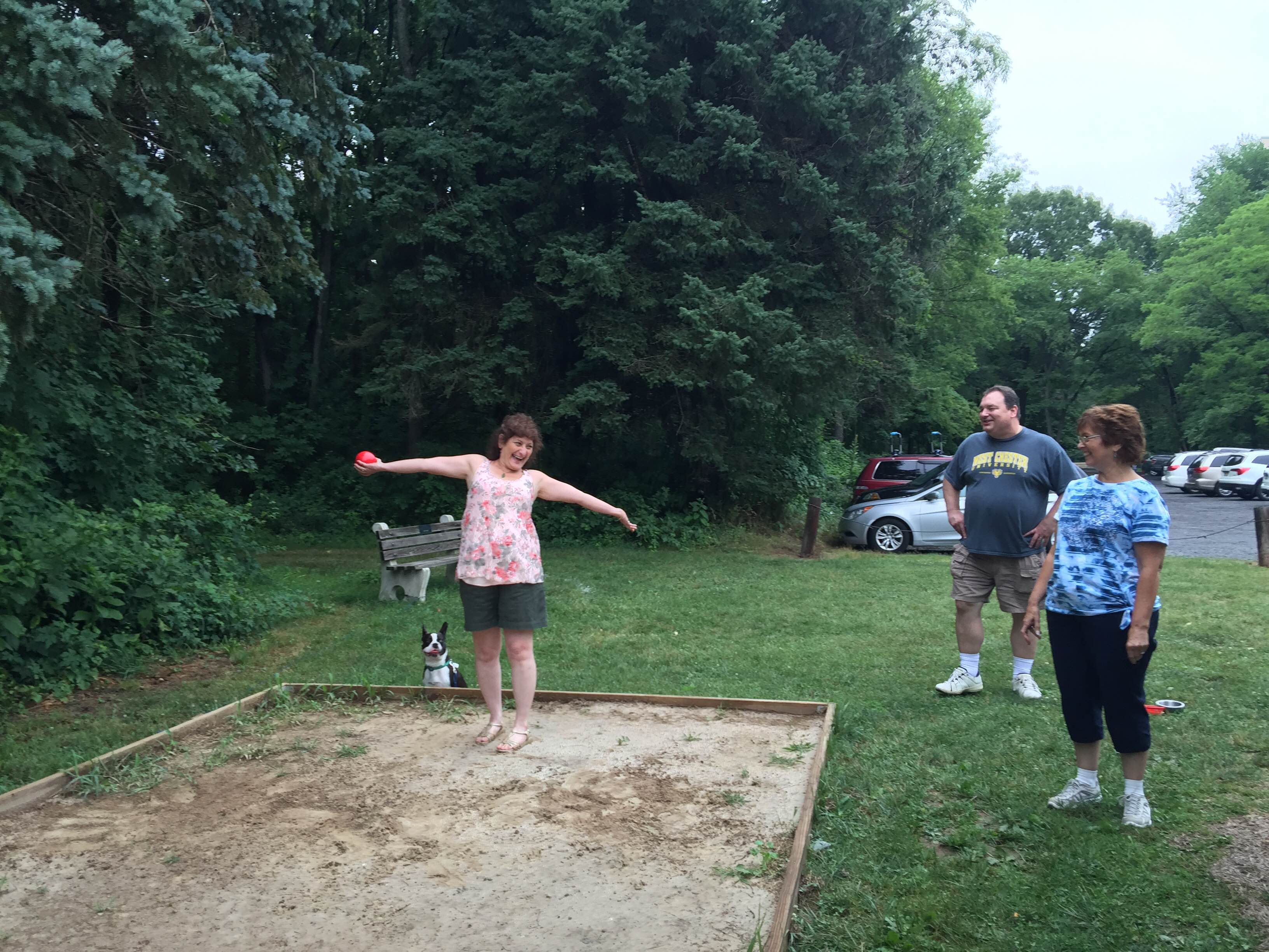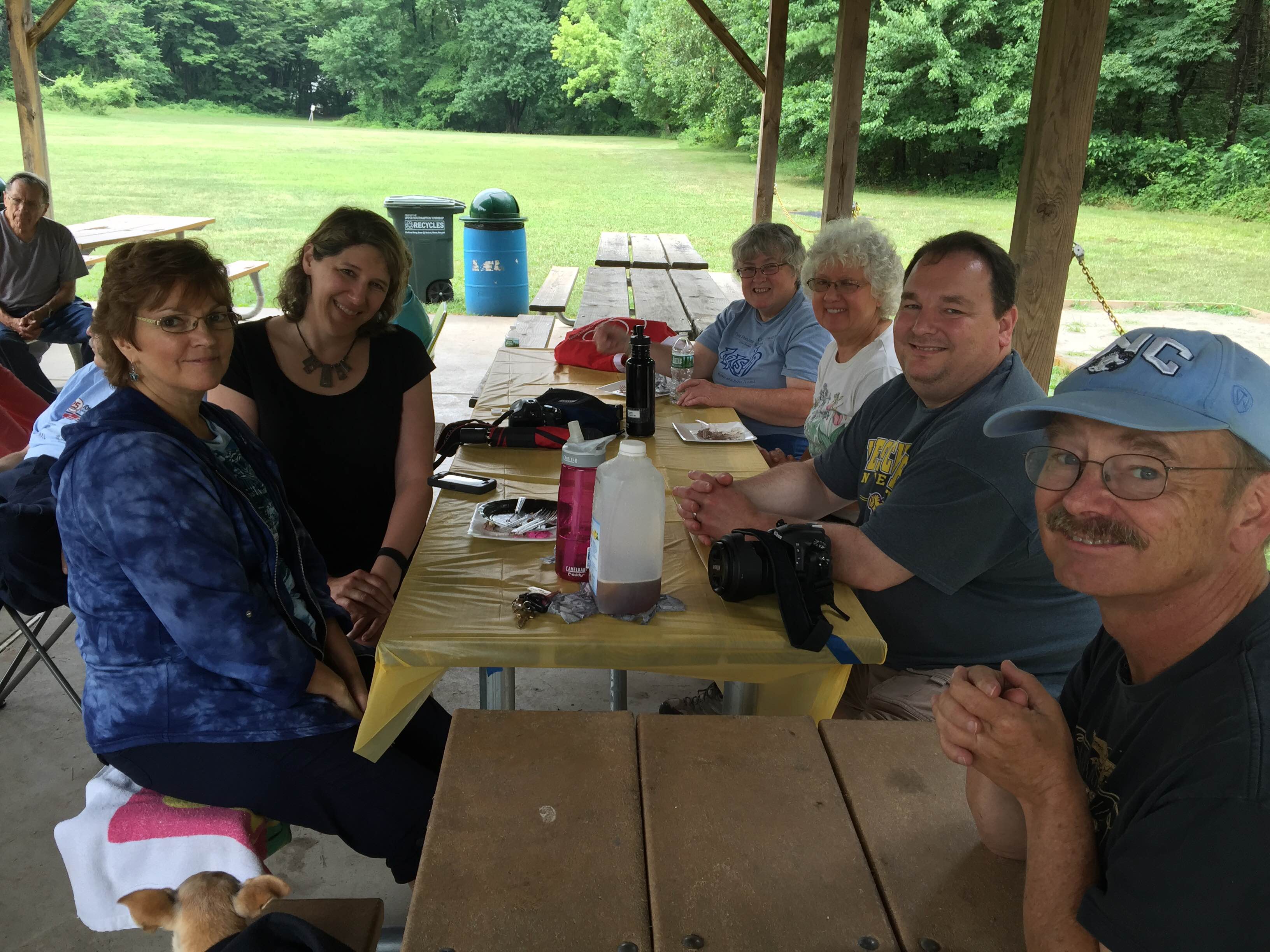 The Annual Club Picnic was held at Tamanend Park on Sat July 9th. We had lovely cool weather, a nice breeze, and a good turnout. Thank you Gary for cooking, and thanks to Michael for providing the sumptuous birthday cake to celebrate Janet's big day. Elaine brought the bocce balls, and several members took a walk to explore the park's trails.